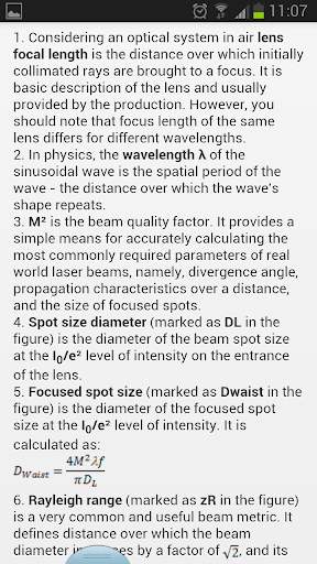Lidaris Calc - is a free software tool for smart-phones equipped with laser related calculators that are frequently required in practice.