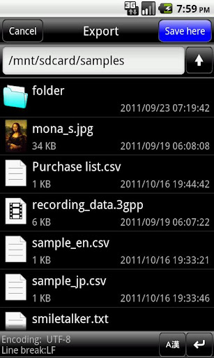 可以使用導入/導出功能很容易地通過使用簡單的文件管理能力!其輸出的文件可以通過電子郵件發送導出功能。