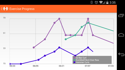 With Lift Tracker you enter the weight you lifted on each exercise and graph your progress over time. You can also graph multiple exercises to see if your bench press is improving at the same pace as your military press, if your squats are improving your deadlifts, if working out biceps before triceps is increasing your gains, or just to show off all your numbers.