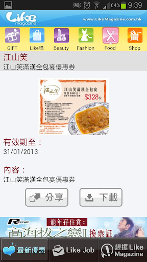 Like Magazine is a free-distributed all rounded entertainment + numerous special offers magazine targets young metropolitans and retail working class. Every issue of Like Magazine feature articles in famous artist interview, fashion and beauty, shopping, dining, travel, latest electronic goods as well as retail industry working tips. It also offers loads of gifts, special offers and f&b coupons to readers.