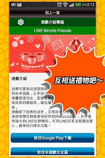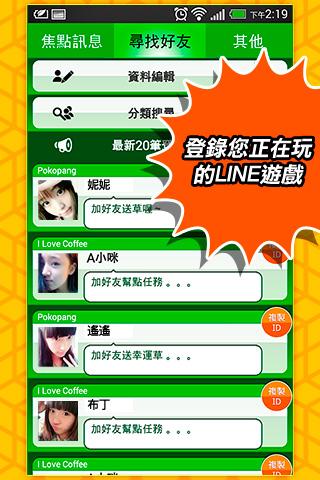 如果您和我們一樣熱愛LINE遊戲,又苦於朋友不夠多無法玩的盡興,那麼歡迎下載我們開發的這款App,除了可以看到免費貼圖情報及各款遊戲新資訊之外,還能藉此尋找到和您玩相同遊戲的朋友喔。