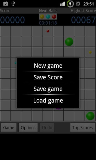 Lines 98 is a game play on 9×9 board with balls of seven different colors. The player can move one ball per turn to remove balls by forming lines (horizontal, vertical or diagonal) of at least five balls of the same color. If the player does form such lines of at least five balls of the same color, the balls in those lines disappear, and he gains one turn, i.e. he can move another ball. If not, three new balls are added, and the game continues until the board is full.