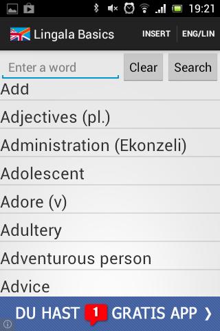This basic Lingala-English-Lingala dictionary is your first step in learning that language. Use it to translate Lingala words and expressions in English and backwards.