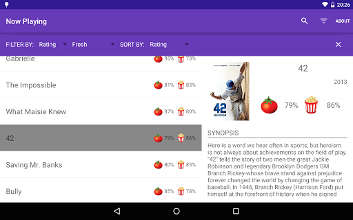 Movie Oracle is an unofficial Android App created by SixByNineApps. It is not affiliated or endorsed in anyway by Rotten Tomatoes, IMDb, or The Movie Network.