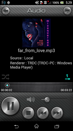 An application for smartphone to find content(audio/video/picture) by a DMS or M-DMS and match it to the rendering capabilities of a DMR - setting up the connections between the DMS and DMR. Note that this App is developed for specified hardware, the I-dongle(TV dongle) produced by TRDC, Lite-On Technology Corp. This application include several function: