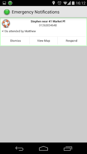If you need help, double touch the large green button on your smartphone screen. An alert message showing your username, location and mobile number is instantly displayed on your colleagues' devices, a map allows them to see your exact location. As soon as someone responds to your request you will be discreetly notified.
