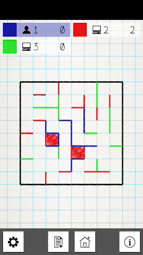 The rules are simple : each turn, a player draws a line on the grid. If the line closes a square, the player scores a point and he can play again. Form the most squares to win the game !
