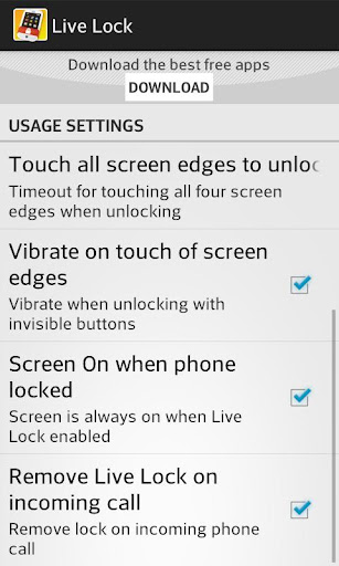 - You can always unlock Live Lock by calling your phone (incoming phone call).