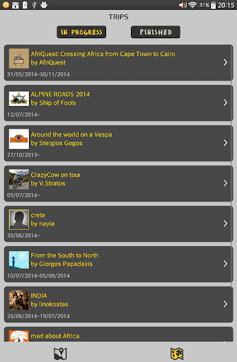 View trips in progress or finished