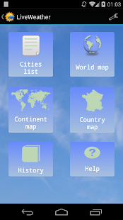 LiveWeather provides an unique feature that lets you to see world map with cities, continents map or countries map !