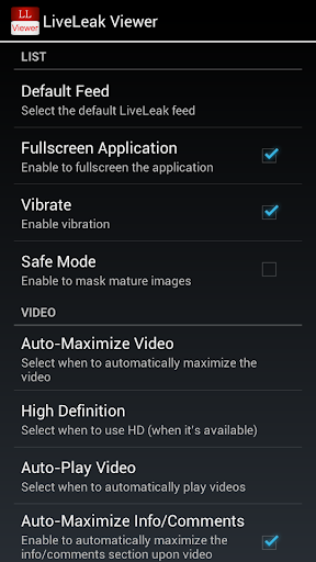 LiveLeak Viewer is an unofficial app that allows you to view videos from the LiveLeak.com RSS feeds.