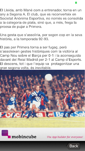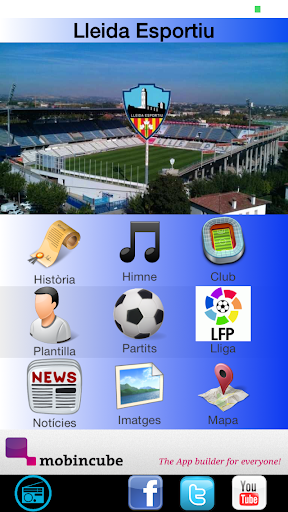Apartats: Plantilla, himne amb música i lletra, ràdio en directe per a la retransmissió dels partits, notícies, resultats, classificació, imatges rellevants, història, estadis, vídeos, i connexió amb facebook i twitter. I a part, moltes coses més.