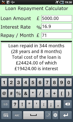 It will also tell you if your proposed monthly repayment will never repay the loan amount (because the interest charged exceeds the repayment).