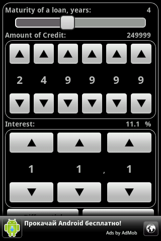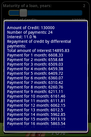 This app disigned for calculating payments of two kinds of credits: Differential Payments and Annuity Payments.