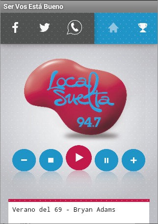 Con la aplicación de Loca Suelta, podés disfrutar 24 hs de los éxitos y los clásicos de todos los tiempos, seguir en tiempo real nuestra lista de reproducción, descubrir si ganaste alguno de nuestros concursos e interactuar con nosotros en Facebook, Twitter y Whatsapp. Con contenidos que incluyen vida sana, tecnología, aire libre, eventos y espectáculos, Loca Suelta busca ante todo una visión positiva de las cosas.