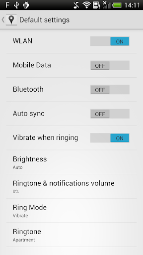 An easy-to-use app that can adjust system settings according to your current location. It can turn on/of Wi-Fi, Bluetooth, Data Sync, Data connection, Set Ringtone & notifications volume, Ring Mode, Ringtone, Brightness etc.