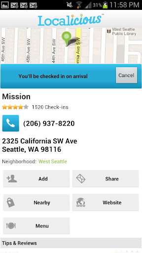 - Pre check-in on Foursquare— find it, set it and forget it!