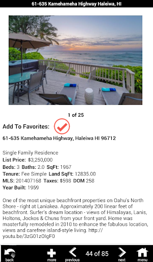 Our advanced GPS enabled application gives you instant mobile access to search Hawaii Real Estate, including: