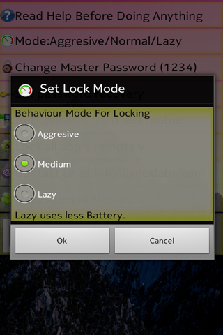 1) Options to set the locking mode:-Aggressive/Normal/Lazy. This will give you the control over battery usage and effective locking.