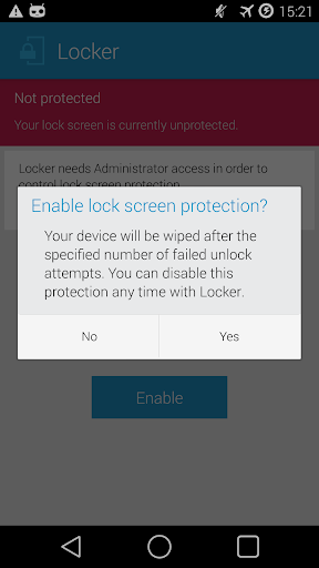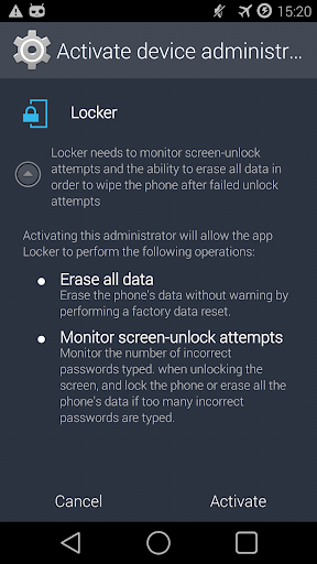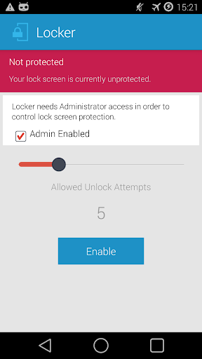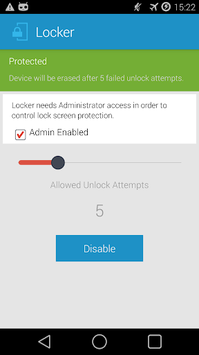Locker is as simple as it is brilliant. Specify the number of allowed attempts to unlock your phone. If the number of attempts exceeds this number the phone will be wiped and erased, protecting your personal information.