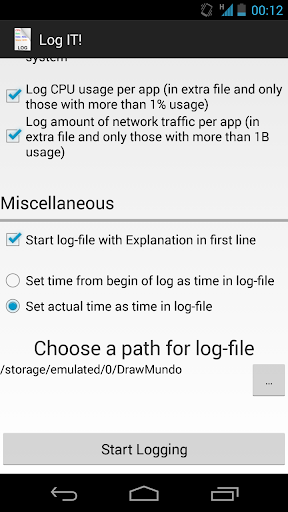 With this app you simply can log informative values to a file. You can choose where to store the log file.