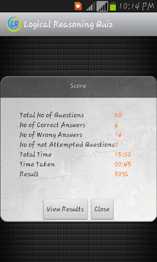 Quiz based on Logical Reasoning and puzzles. This quiz mainly deals with Puzzles.It has lot of information about Logical Reasoning problems. There are two modes of Quiz - "Practice" and "Quiz". Before getting into the Quiz mode, you can go through the practice mode and be prepared for Quiz. There are different levels of Quiz - "Easy" , "Medium" and "Difficult". Check out for bookmark icon on the top right of the screen which tracks the attended and unattended Questions. On the result screen both the selected and the correct option will be displayed, So that, the correct option will be known.