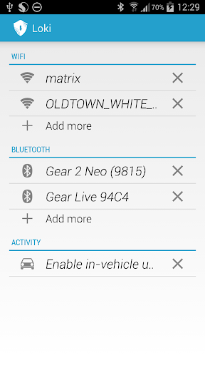 You can even have multiple unlock mechanisms coexist on your device, and Loki will correctly handle all the lock/unlock contention for you. E.g while you're connected to your home WiFi (a safe area), Loki will keep your phone unlocked even if it loses connection to a safe Bluetooth device. No more inconvenience from having to unnecessarily unlocking your phone.