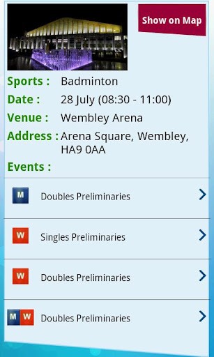 London 2012 Visitor Guide App provides you all details of Olympic Games such as Sports, Dates, Venues, Schedules. You can search by sport, date and/or venue and see the details of game, venue address, photo and the direction on Map.