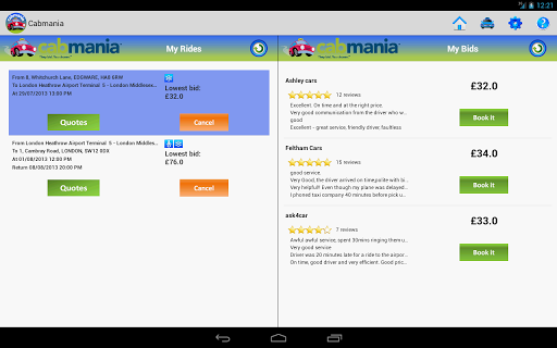 Put your job for a bid, let London cabbies bid on your ride and get the best possible price.