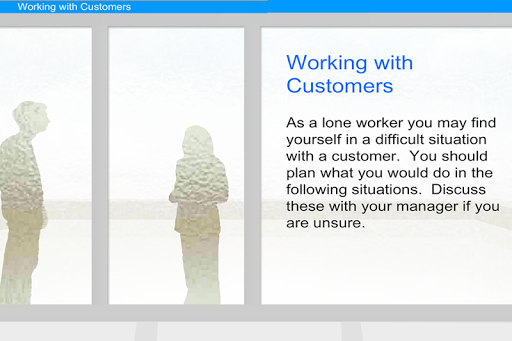 This course provides guidance on how lone workers' health and safety is managed with your organisation. It will help you understand what you need to do to keep safe when working alone. The course uses video presenters and virtual learning worlds to aid the learning experience.