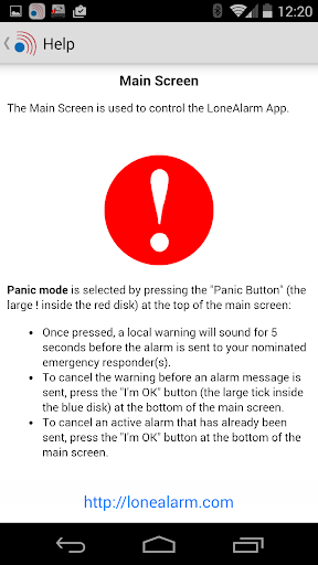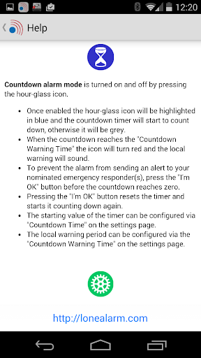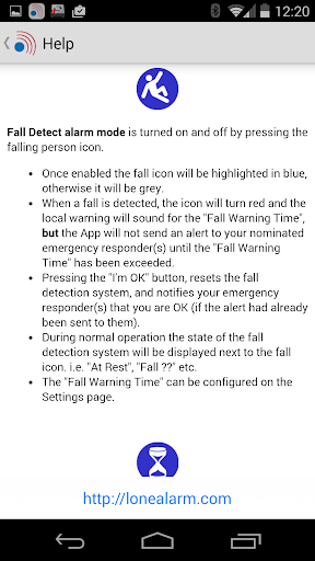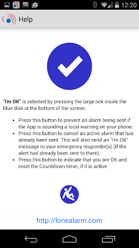 * Unobtrusive - LoneAlarm’s service runs in the background – or deliberately in the foreground, depending on users’ needs.