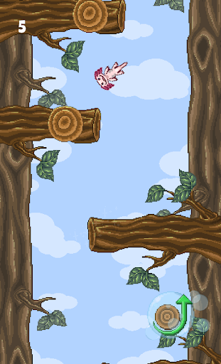 Tap the screen to send the axolotl flying when rotating around a branch. They'll get faster swiftly,