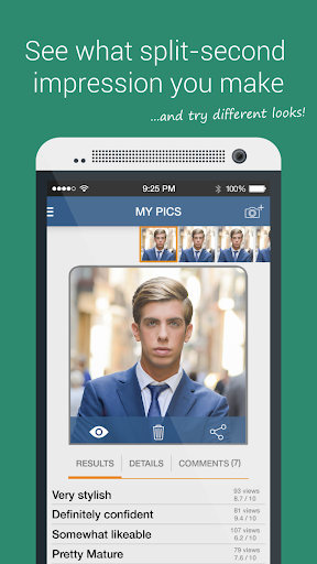 Just upload your picture, choose the kind of feedback you want to get, and let others give you their honest opinion! Use your ratings to choose your best profile pictures for online dating or professional networking.