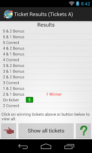The results are shown in an easy to use display showing exactly which ticket numbers you have got correct and any winning lines you may have. The option to play a little fanfare when you have a winning ticket is also available.