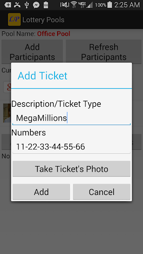 If you answered yes to any of the above questions, Lottery Pools app for Android is your solution! Here, one person buys the tickets (pool leader) and inputs them into the app and adds all the other participants to the pool. No one can remove a participant or a ticket from the pool once they are created, and every one in the pool can see them and know which tickets have won. (With read-only access.) This way, every participant can know exactly if they've won anything and how much every one should receive.