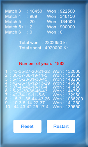 The app will simulate lotto drawings all the way until you have 6 matches, and in the meantime show you how much your numbers will give you. That way you can see the good numbers, and the bad numbers.