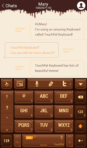 Say goodbye to your keyboard's boring appearance! The Love Chocolate TouchPal Keyboard theme will completely make it a new colorful look & feel!