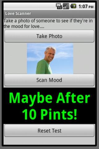 Simply photograph a person and let your Android use the latest in high tech mood sensing technology to determine if the person is in the mood for love!