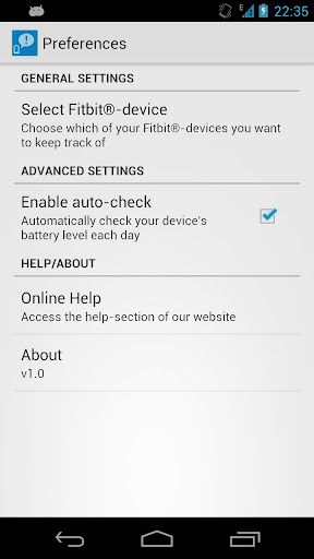 Low Battery Notifier for Fitbit® alerts you when your tracker's battery gets low: The app periodically checks your tracker's battery level in the background (once a day), and puts an alert in your notification bar when the battery is nearly empty.