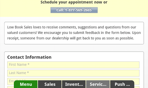 Shop for your next vehicle in the palm of your hand. The Low Book Sales app provides instant access to inventory, the latest incentives, rebates, and a full multimedia brochure. This app uses push notifications to schedule service appointments, access specials, coupons, dealer contact info, and more…