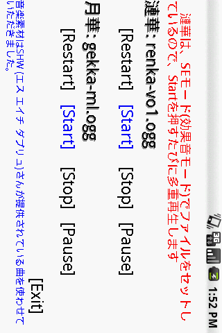 このプログラムを実行すると、/sdcard/luarida/soundsample/フォルダにスクリプトがコピーされます。後は、luarida.luaにファイルを手動で登録してください。一度実行すれば、後はアンインストールしても大丈夫です。