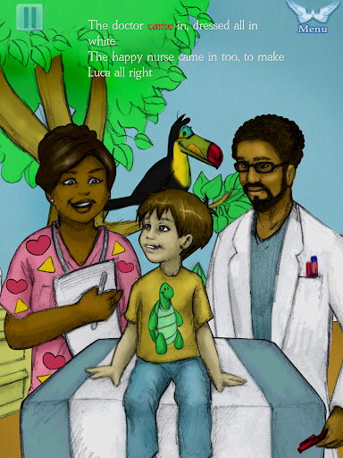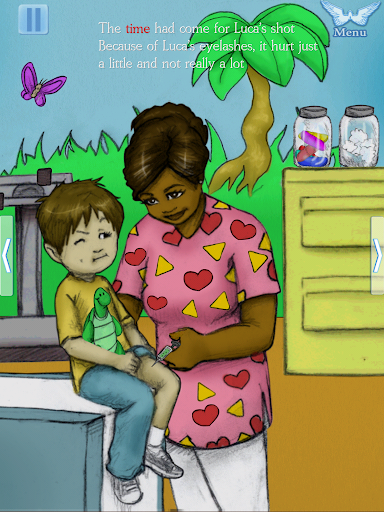 In this award winning app, Luca, the boy with the magic eyelashes, is ready to get his shots at the doctor's office. Children experience this pediatric appointment interactively through touch, sight and sound. The story includes a list of suggestions for parents focused on helping to guide them through what can be a stressful experience.