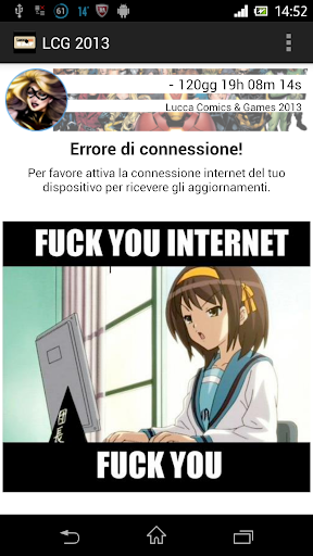 Anche per quest'edizione 2014 rilascio quest'applicazione per tenere sotto controllo quanto manca all'inizio della più importante fiera italiana dedicata al fumetto, al gioco e a tutto ciò che vi ruota attorno.