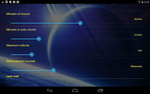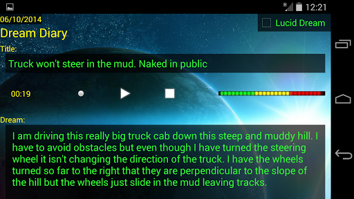 Lucid Alarm is a sophisticated tool to help you get lucid and stay lucid. Record your own voice cues and set them to play at the time and the volume you want. Use Isochronic or Binaural tones to induce a lucid state of consciousness. Write you dreams down in a digital dream diary. Choose attractive application styles and themes. Get lucid with Lucid Alarm and dream on !