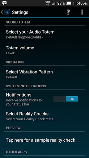 To help with that problem, I have created an app that will remind the user throughout the day at set intervals (chosen by user) to perform reality checks. The user can also customize their totem by altering the sound/vibration pattern etc. This app also includes a notification option that can send a notification with every reality check, to display the reality checks that have been selected by the user.