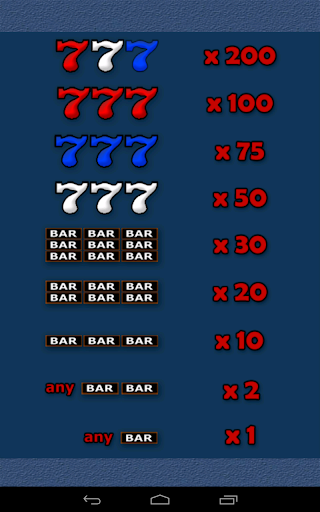 Simulator of popular casino game Lucky 7, also known as Seven and Stripes. This slot has 3 reels and one pay line. Maximal bet is 10 virtual coins.