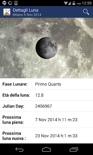 Calcola le fasi lunari, il giorno giuliano, l'età della luna, la prossima luna piena, la prossima luna nuova, le effemeridi, ecc..