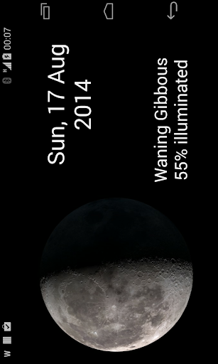 Tap the date to bring up a Lunar calendar where you can view the phases of the moon for each day of the month, change the month by either swiping the screen or clicking the forward or backward buttons. Click on a date and you will go back to the large Lunar view for that date.