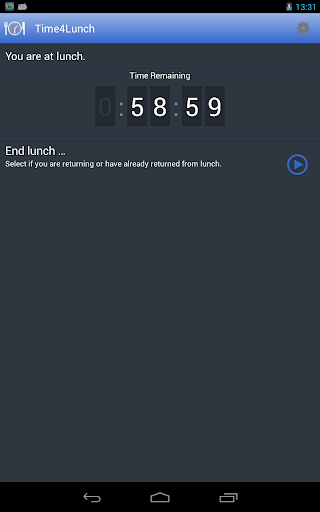 Start the lunch timer whenever you want; Time4Lunch will let you know how long you have left.