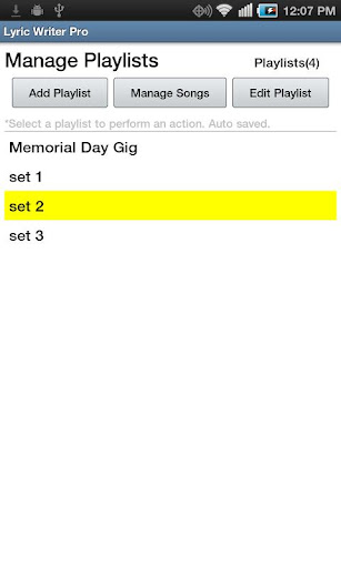 Lyric Writer Pro also includes a playlist manager which can be used to create an unlimited number of playlists which contain songs that may be rearranged.